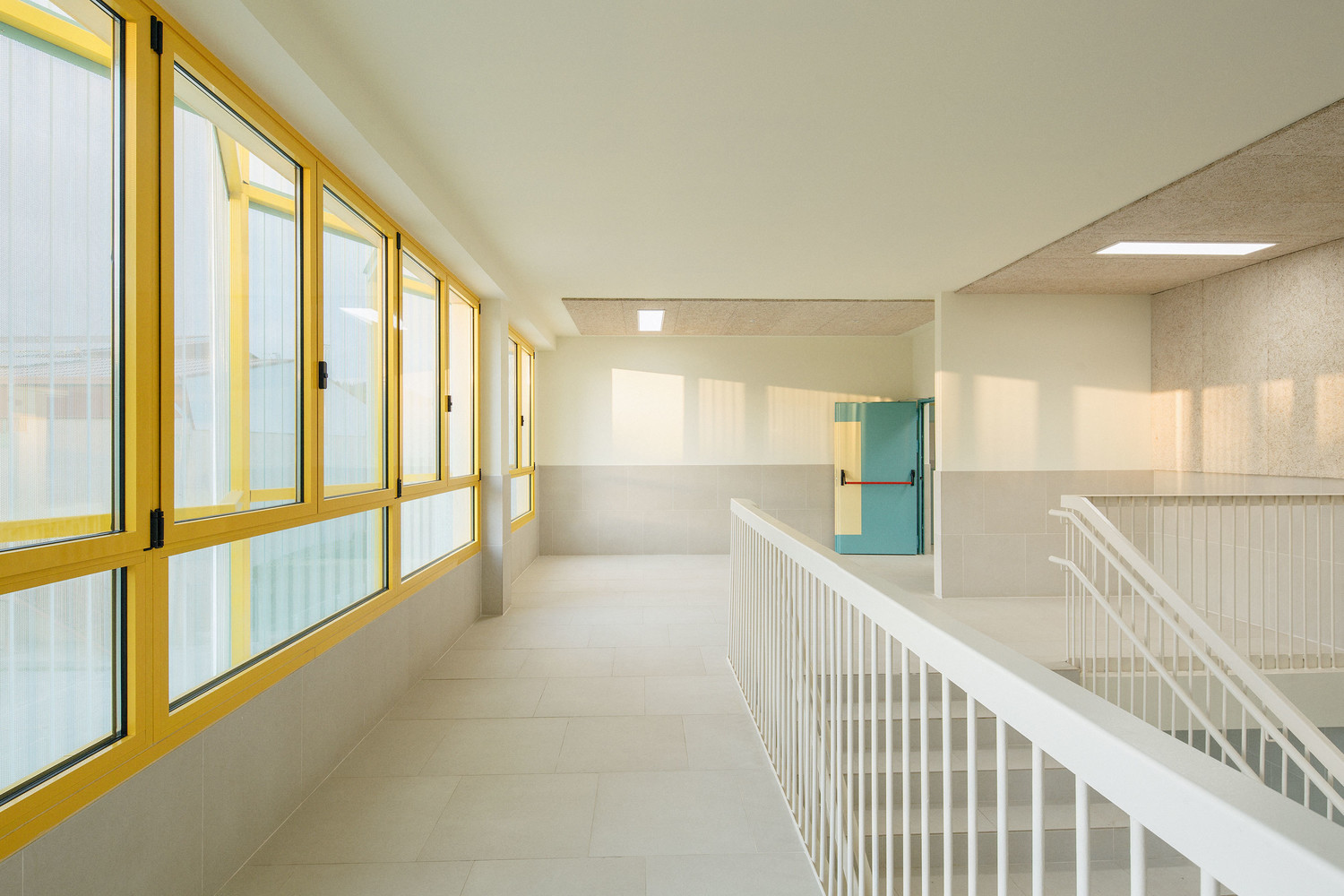 It faces the playgrounds of the school complex of the municipality located on the outskirts of the town, towards a space to which up to now they have practically been denied facades in spite of being surrounded by buildings. Intentionally the facade evokes the interior-exterior relationship, classroom-playground. The playground is understood as an extension of the school.The new construction extends a school of the sixties designed by the architect D. José Luis Burgos.The project is attached to the existing building and adopts its logic. The growth scheme responds directly to the premises of the assignment, where an increase in the number of classrooms fits in a simple and effective way with the pre-existence.The emphasis is on circulations, continuous, wide, without cul de sac.
